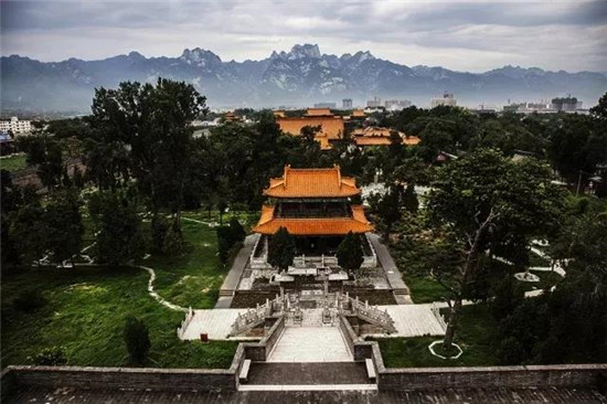 西岳廟始建于漢武帝時(shí)代,后成為歷代帝王祭祀華山神的場(chǎng)所。西岳廟坐北朝南,廟門(mén)正對(duì)華山。在由北至南的中軸線上依次排列著灝靈門(mén)、五鳳樓、欞星門(mén)、金城門(mén)、灝靈殿、寢宮、御書(shū)樓、萬(wàn)壽閣。整個(gè)建筑呈現(xiàn)前低后高的格局。
