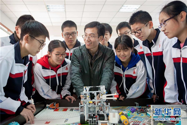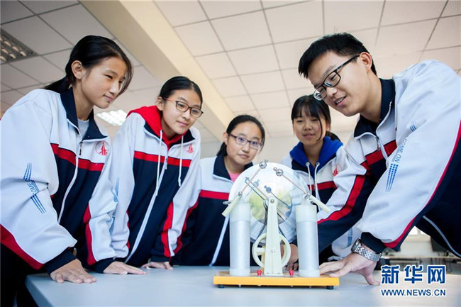 近年來,河北武邑中學開設機器人、航模、科技實驗等趣味科普課程,激發(fā)學生的創(chuàng)新創(chuàng)造意識和科學探索精神,讓學生近距離感受科技魅力。 新華社記者 朱旭東 攝