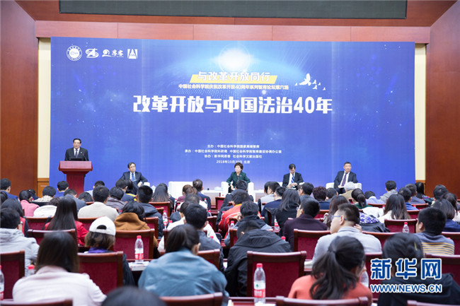 10月30日,“與改革開放同行”系列智庫論壇第六場在北京成功舉辦,本場主題為“改革開放與中國法治40年”。“與改革開放同行”系列智庫論壇是為慶祝中國改革開放40周年,由中國社會科學院國家高端智庫主辦,中國社會科學院科研局、中國社會科學院智庫建設(shè)協(xié)調(diào)辦公室承辦,新華網(wǎng)思客、社會科學文獻出版社協(xié)辦推出的。新華網(wǎng)記者 李林 攝