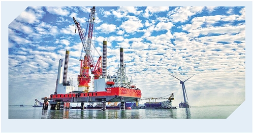 圖為建設(shè)中的福建福清興化灣30萬(wàn)千瓦海上風(fēng)電場(chǎng)一期工程。 王軼辰攝