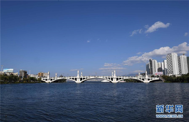 11月8日拍攝的大理洱海興盛大橋。 初冬時(shí)節(jié),云南大理洱海湖水清澈,景色秀麗迷人。 新華社記者楊宗友攝
