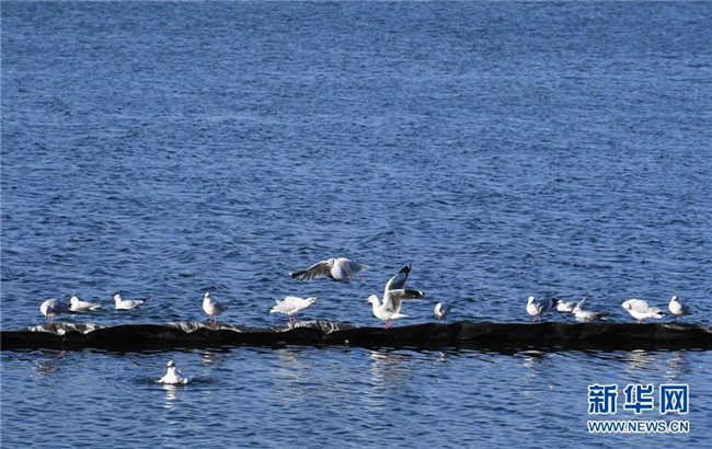 11月8日,紅嘴鷗在大理洱海上憩息。 初冬時(shí)節(jié),云南大理洱海湖水清澈,景色秀麗迷人。 新華社記者楊宗友攝