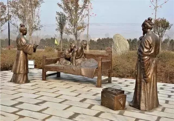 漢文帝劉恒,漢高祖第三子,為薄太后所生。高后八年(前180)即帝位。他以仁孝之名,聞于天下,侍奉母親從不懈怠。母親臥病三年,他常常目不交睫,衣不解帶;母親所服的湯藥,他親口嘗過后才放心讓母親服用。他在位24年,重德治,興禮儀,注意發(fā)展農(nóng)業(yè),使西漢社會穩(wěn)定,人丁興旺,經(jīng)濟得到恢復和發(fā)展,他與漢景帝的統(tǒng)治時期被譽為“文景之治”。