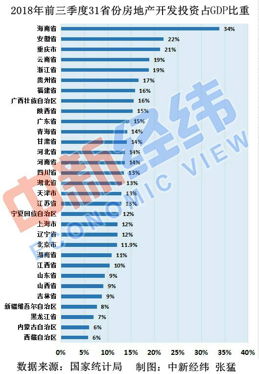 中新經(jīng)緯客戶端(微信公眾號:jwview)梳理發(fā)現(xiàn),2017年前三季度31省份“房地產(chǎn)開發(fā)投資占GDP比重”前三名與今年相同,也是海南、安徽、重慶。易居研究院智庫中心研究總監(jiān)嚴躍進認為,海南、安徽、重慶占比高與此三省的招商力度大有關系,也和具體的產(chǎn)業(yè)導入有關。