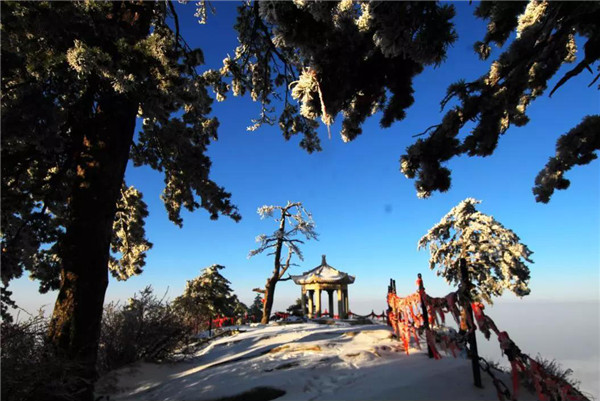 我如一尊玉雕,石頭般固坐著望著腳下浩瀚的雪中松林,情不自禁地吟唱出一首《華山雪松》:雪的夢境一一松的綠影,匯成清純神圣的透明的生命。輕揚的音符一一凝固的畫卷,織出美麗而多彩的甜蜜愛情。華山的雪,是跳動的樂之精靈;華山的松,是洋溢著色彩的弦之翅膀。雪落松間,深情而浪漫,冬天的歌搖著醉意與醇香,似鳥一樣,在云中飛翔!