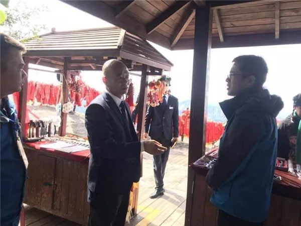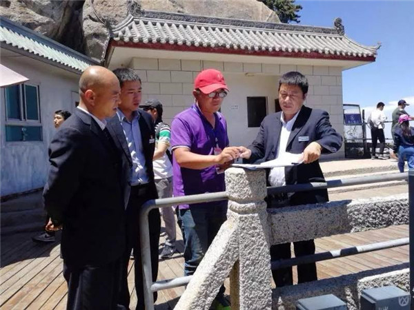 其實,雷科峰平時對大家要求挺嚴(yán)的,職工背后議論說雷科峰有一種軍人作風(fēng),凌厲、硬氣,大家跟上他干事活多還辛苦。印象最深的是那一次美化南天門“三間房一頁瓦”附近的臺地。坑洼不平的臺地上原來蒙著一堆土,晴天一層灰,雨天滿地泥,冬天雪泥一凍一消,平臺就成了沼澤,不說過來過去行走不便,看起來也讓人不舒服,游客常常一不小心就濺得滿身的泥水,很掃興,雷科峰下決心美化平臺。美化平臺所用的沙子、石子、水泥要到二三里路遠的溝底去背。從山頂?shù)綔系?,一路上全是立坡陡崖,雷科峰領(lǐng)著十幾名職工利用六天的工余時間,硬是把近二十噸的沙石背了上來。背料過程中,有的職工肩膀磨破了,有的雙腿像篩糠一樣抖個不停,許多職工中途不敢蹴下來休息,怕一蹴下就再也站不起來了,歇息時把沙袋子擱在路邊的石坎上,人站著緩口氣……一個個汗流浹背,氣喘吁吁。