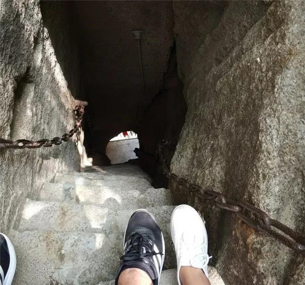 古書(shū)記載:在華山大上方有一天然石洞,形似豎井,壁如刀削,僅容一人上下。洞邊有一木梯,石壁上刻有“洞在高山”四個(gè)大字。出洞四望,豁然開(kāi)朗,峰巒疊翠,林木蒼郁,奇花競(jìng)秀,流泉淙淙,飛鳥(niǎo)時(shí)鳴,給人一種“無(wú)限風(fēng)光在險(xiǎn)峰”之感。因?yàn)榇笊戏降缆菲D險(xiǎn),不是游客必經(jīng)之地,但古書(shū)記載的景點(diǎn)就在那里。