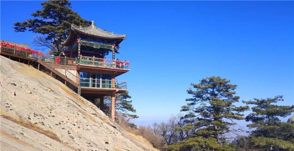 ?。w力較弱的小伙伴可以在游客中心乘坐北峰索道至北峰后步行至西峰;或者乘坐西峰索道直達西峰山巔。)