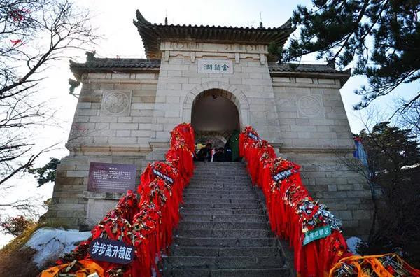 金鎖關(guān)北接五云峰,南控華山主峰,東西兩側(cè)壑深千丈,關(guān)前僅有一米寬的臺(tái)階石徑。環(huán)周古松蒼翠,奇石林立,常有祥云環(huán)繞,風(fēng)光非常迤麗。關(guān)內(nèi)關(guān)外登山路兩側(cè)鐵索上情侶鎖、平安鎖,重重疊疊,紅繩彩線迎風(fēng)搖曳,不失為關(guān)前一道美麗的風(fēng)景線。在這里,鎖住你對(duì)愛情的誓言,表達(dá)你堅(jiān)如磐石的愛情忠貞!