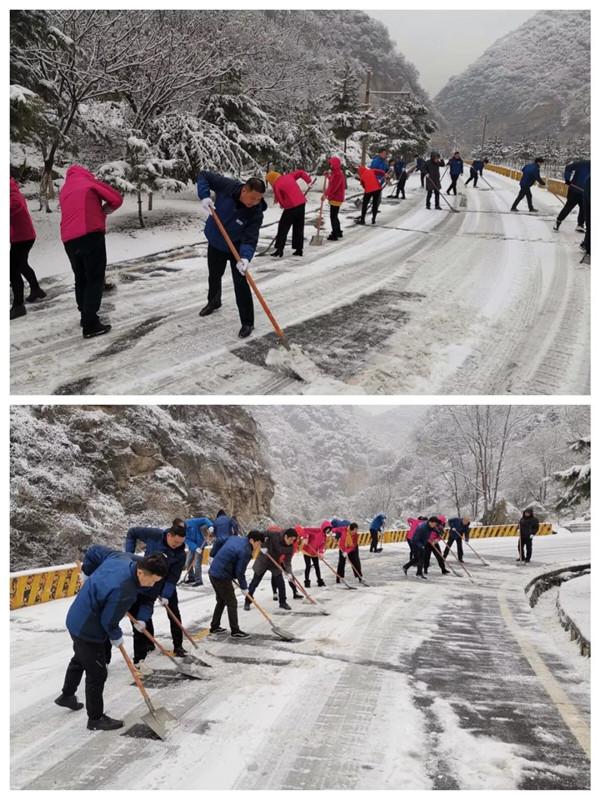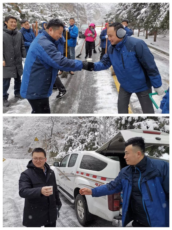 1月31日凌晨景區(qū)出現(xiàn)強降雪天氣,道路積雪嚴重影響行車安全。華旅集團第一時間多渠道發(fā)布景區(qū)推遲運營時間的信息,并向游客做好解釋工作,同時號召集團各部室、各單位迅速組織人員赴進山公路進行掃雪除冰,經(jīng)過三個小時的全力清掃,東線進山公路積雪清理完畢,景區(qū)在短時間內(nèi)恢復運營,西線索道進山公路及華山峪區(qū)域不斷加大清掃力度,盡力實現(xiàn)景區(qū)全線貫通。