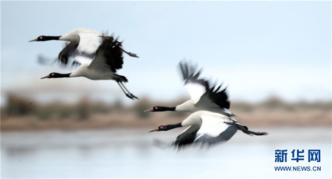 2月21日在草海國家級自然保護(hù)區(qū)內(nèi)拍攝的黑頸鶴。新華社發(fā)(胡攀學(xué)攝)