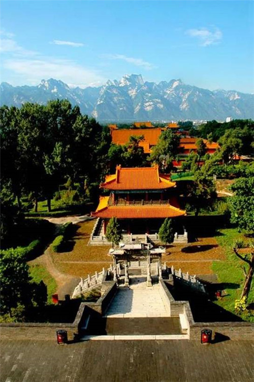 西岳廟是供奉西岳大帝華山神的廟宇,廟始建于漢武帝時代,后成為歷代帝王祭祀華山神的場所。西岳廟坐北朝南,廟門正對華山。在由北至南的中軸線上依次排列著灝靈門、五鳳樓、欞星門、金城門、灝靈殿、寢宮、御書樓、萬壽閣。整個建筑呈現(xiàn)前低后高的格局。西岳廟建筑相當(dāng)宏偉。五鳳樓建于高臺上,高達(dá)20多米,登樓望華山,五峰歷歷在目。正殿灝靈殿建筑為琉璃瓦單檐歇山頂,坐落于寬廣的“凸”字型月臺之上,面寬7間,進(jìn)深5間,周圍有回廊,氣勢宏偉,歷代帝王祭祀華山多住于此。殿內(nèi)懸掛有康熙、道光、慈禧所題“金天昭端”、“仙云”等匾額。整個院落林木繁茂,山石嶙峋,饒有園林之趣。