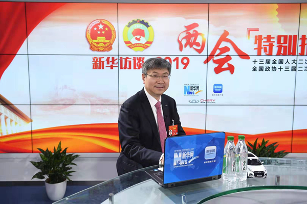 全國(guó)人大代表、奇瑞汽車(chē)股份有限公司黨委書(shū)記、董事長(zhǎng)尹同躍,3月6日做客新華網(wǎng)2019全國(guó)兩會(huì)特別報(bào)道。新華網(wǎng) 李相博 攝