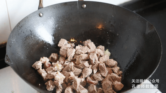 6.倒入牛腩塊,加一大碗清水,調入白糖和鹽,大火煮開后轉小火煮約30分鐘,煮至用筷子輕易戳透牛腩即可。