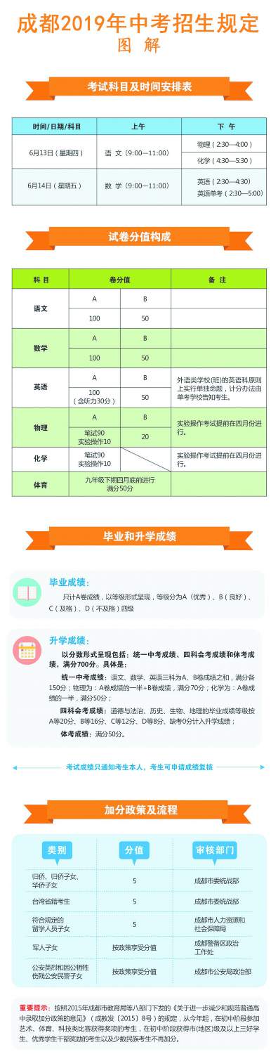 記者從規(guī)定中發(fā)現(xiàn),今年成都市中考政策整體維持穩(wěn)定,考試時間、科目設(shè)置及計分辦法、錄取批次和指標到校生政策等均未作調(diào)整,但是仍然有兩個變化。