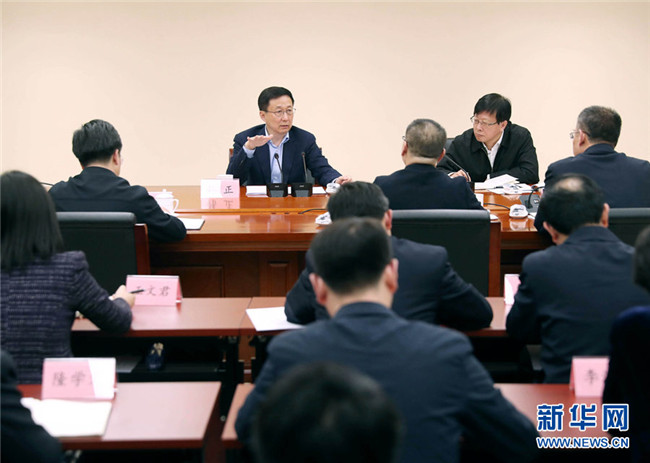 3月26日,中共中央政治局常委、國(guó)務(wù)院副總理韓正到國(guó)家醫(yī)療保障局調(diào)研并主持召開(kāi)座談會(huì)。 新華社記者劉衛(wèi)兵攝