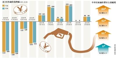 根據(jù)國家發(fā)改委相關(guān)制度安排,目前我國成品油價(jià)格每十個(gè)工作日調(diào)整一次。3月28日24時(shí),我國成品油出現(xiàn)今年以來第五次上漲。