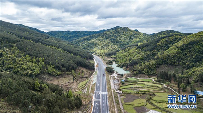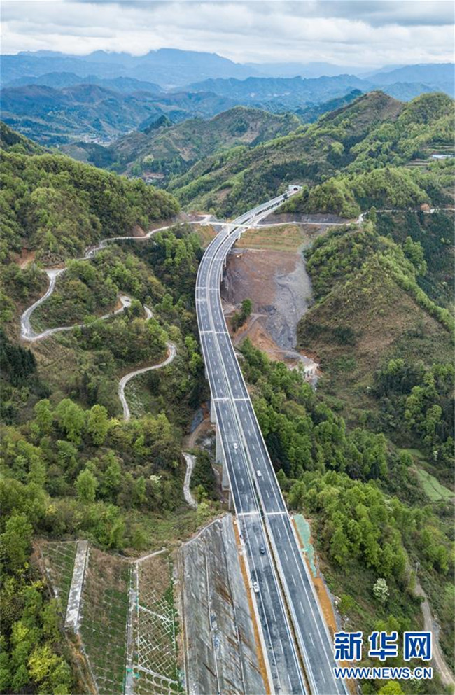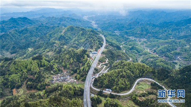 4月3日無人機(jī)拍攝的三荔高速周覃至水各路段。新華社記者 陶亮 攝