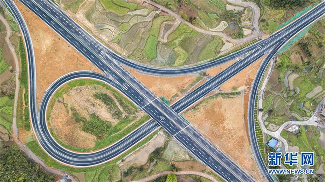 4月3日無人機(jī)拍攝的三荔高速周覃互通。 新華社記者 陶亮 攝