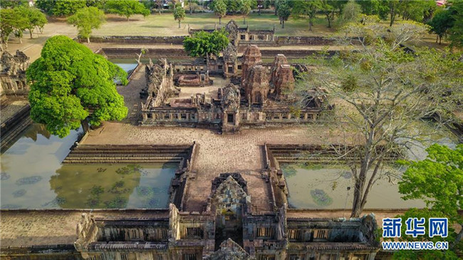 這是4月5日航拍的泰國武里南府低城寺。 一年一度的“登帕儂隆山節(jié)”在泰國東北部毗鄰柬埔寨的武里南府帕儂隆山舉辦。當(dāng)?shù)厝艘怨叛b巡游展示獨(dú)特的傳統(tǒng)文化,希望能吸引更多外國游客、促進(jìn)當(dāng)?shù)芈糜螛I(yè)發(fā)展。 新華社記者 張可任 攝