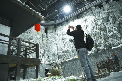 除了眾多親子游客,不少年輕人也特地前來(lái)。中影基地6號(hào)棚的江南水鄉(xiāng)拍攝小景跟前,聚集了許多年輕人圍觀(guān)一對(duì)青年體驗(yàn)拍攝《大話(huà)西游》中的經(jīng)典場(chǎng)景。全副武裝扮演至尊寶的是來(lái)自北京吉利學(xué)院的學(xué)生張江。“曾經(jīng),有一份真誠(chéng)的愛(ài)情放在我面前,我沒(méi)有珍惜,等到我失去的時(shí)候才后悔莫及……”當(dāng)背出了至尊寶的經(jīng)典臺(tái)詞時(shí),張江依然覺(jué)得“很尬”,難以入戲。導(dǎo)演趕緊上來(lái)給他說(shuō)戲,“這時(shí)候劍距離你的喉嚨只有0.01公分,你要仰起頭……”這當(dāng)口,飾演紫霞仙子的女同學(xué)已經(jīng)拿不住劍,手腕松了下來(lái)。一個(gè)小時(shí)過(guò)去了,這一條還是沒(méi)能過(guò),只好休息一會(huì)兒。“人生第一次嘛,體驗(yàn)體驗(yàn)。”張江說(shuō)。