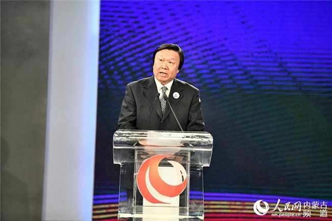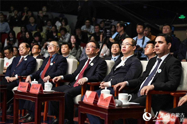 內(nèi)蒙古自治區(qū)黨委常委、宣傳部部長白玉剛(左三),人民網(wǎng)黨委書記、董事長、總裁葉蓁蓁(右二)等領(lǐng)導(dǎo)和嘉賓出席發(fā)布會(huì)。