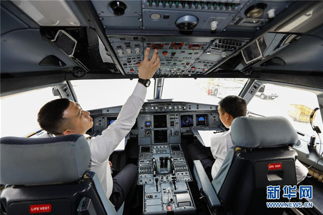 4月18日,試飛開(kāi)始前,重慶航空公司的機(jī)長(zhǎng)在進(jìn)行航前檢查。當(dāng)日,隨著重慶航空一架客機(jī)安全平穩(wěn)降落在巫山機(jī)場(chǎng),標(biāo)志著地處長(zhǎng)江三峽核心區(qū)的巫山機(jī)場(chǎng)試飛工作圓滿(mǎn)成功。本次試飛對(duì)巫山機(jī)場(chǎng)陸空通信、導(dǎo)航設(shè)施、跑道道面、滑行路線(xiàn)、飛行區(qū)標(biāo)志標(biāo)識(shí)、機(jī)場(chǎng)凈空、飛行程序、機(jī)場(chǎng)運(yùn)行標(biāo)準(zhǔn)等進(jìn)行全面檢驗(yàn),各項(xiàng)參數(shù)和指標(biāo)正常,機(jī)場(chǎng)相關(guān)設(shè)施、設(shè)備均符合行業(yè)規(guī)范要求,飛行區(qū)已基本具備民航飛機(jī)通航條件,有望在今年6月正式通航。新華社記者 劉潺 攝