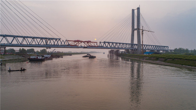 世界最大跨度無(wú)砟軌道高速鐵路橋梁——商合杭鐵路裕溪河特大橋順利合龍