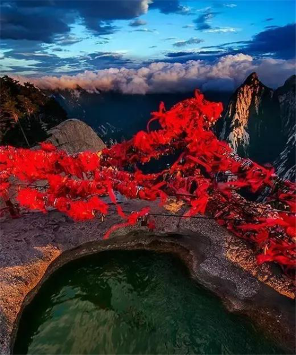 華山是一座奇山,一石成一岳。自然景觀具有非常獨特的個性色彩。華山的石奇,是因為它由一整塊完整的花崗巖構(gòu)成,經(jīng)過造山運動形成了千姿百態(tài)的奇峰峭嶺和幽谷險道。華山的路奇,“自古華山一條路”是一道奇觀,這條路或越澗跨溝,或臨崖盤山,或入崖間深谷,或走峭壁嶺脊,或平坦或曲陡,或?qū)挸ɑ颡M窄,曲折變化,跌宕起伏,把人帶入意境深邃的萬般景象之中。華山的水奇,華山的水不以盛見長,而以水景奇觀叫絕。“仰天池”不盈三尺,水深不過尺余,卻澇不溢,旱不涸。華山的樹奇,華山多古樹名木,成千上百年樹齡的古松匯聚成林,奇?zhèn)延^,更奇的是那些長在山腰崖畔,扎根石縫,連理連枝的松樹,像夫妻相擁,兄弟并立,姐妹相望,義士結(jié)盟,體現(xiàn)了人文文化的豐富內(nèi)涵。