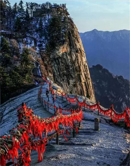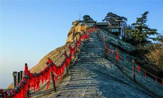 華山山體倚天拔地,四面如削,更有千尺幢、百尺峽、蒼龍嶺、鷂子翻身、長空棧道等十分險峻之地,被譽(yù)為“奇險天下第一山”。