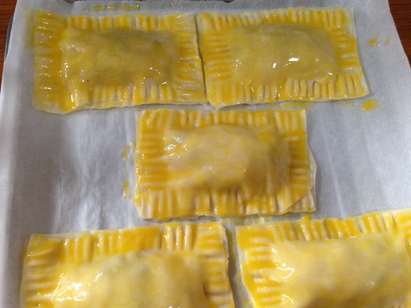 10.烤盤鋪油紙放入蘋果派,表面刷蛋黃液
