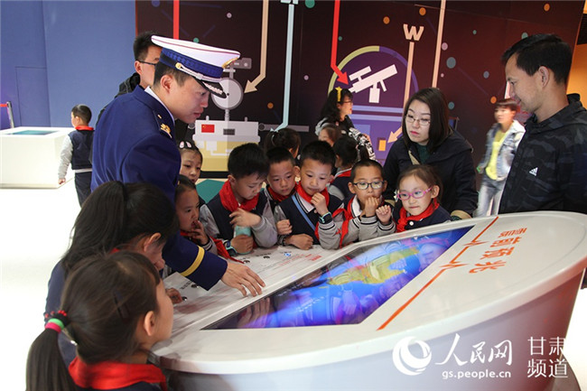 甘肅省森林消防總隊指戰(zhàn)員向?qū)W生普及應(yīng)急管理知識。(甘肅省森林消防總隊政治部供圖)
