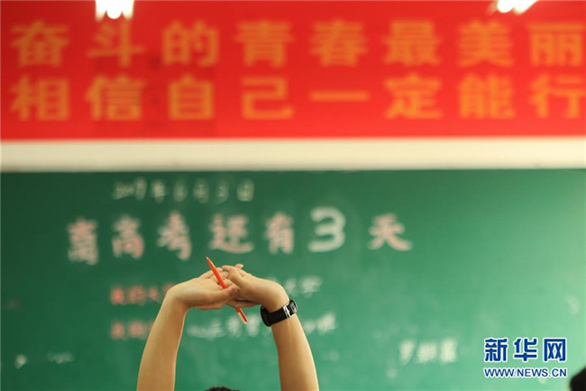 6月4日,在湖南省衡陽縣第一中學(xué),一名高三學(xué)生自習(xí)間隙伸腰活動。新華社發(fā)(曹正平攝)