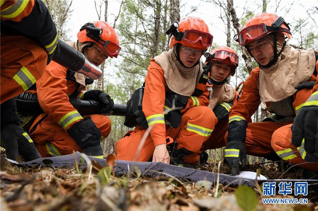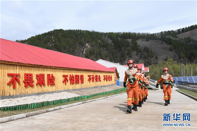 奇乾中隊的消防隊員在營地內(nèi)訓(xùn)練(5月15日攝)。新華社記者 劉磊 攝