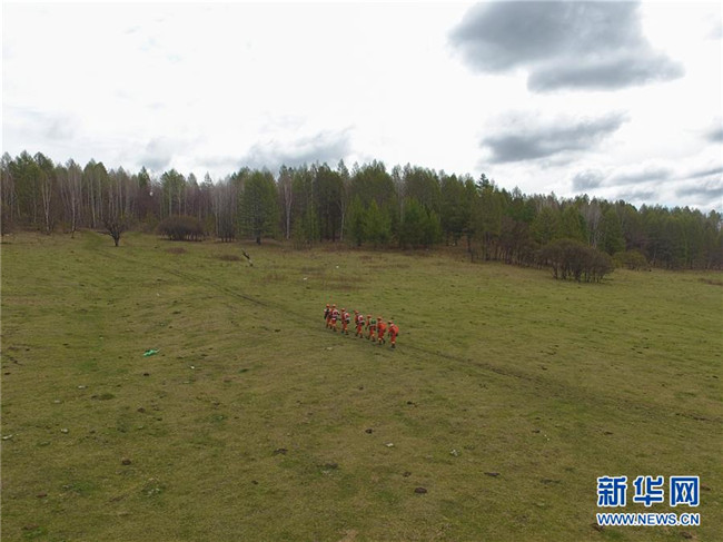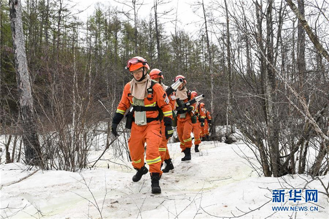 奇乾中隊消防隊員在戶外進(jìn)行綜合訓(xùn)練時經(jīng)過一片暫未消融的冰雪(5月19日攝)。新華社記者 劉磊 攝