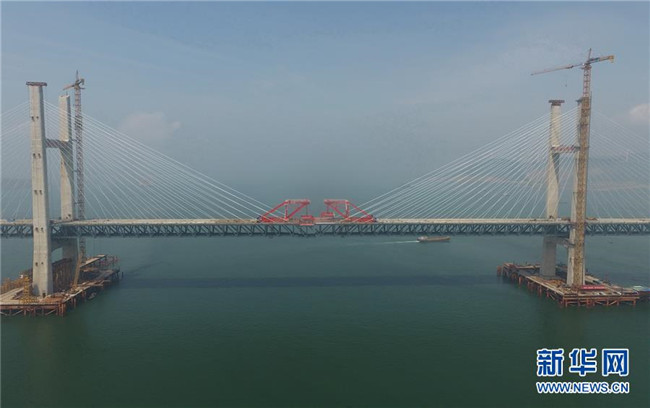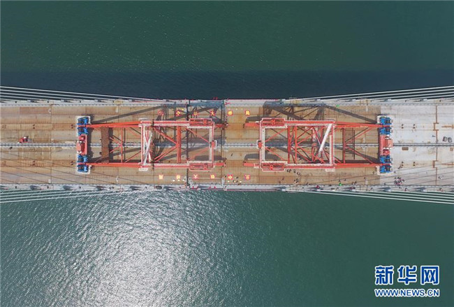 福平鐵路平潭海峽公鐵兩用大橋元洪航道橋主橋正在合龍(6月5日攝)。 新華社記者 林善傳 攝