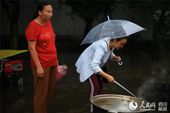 6月19日,宜賓長(zhǎng)寧地震后的第二個(gè)清晨,安置點(diǎn)群眾領(lǐng)取了免費(fèi)的早餐。(人民網(wǎng) 朱虹 攝)