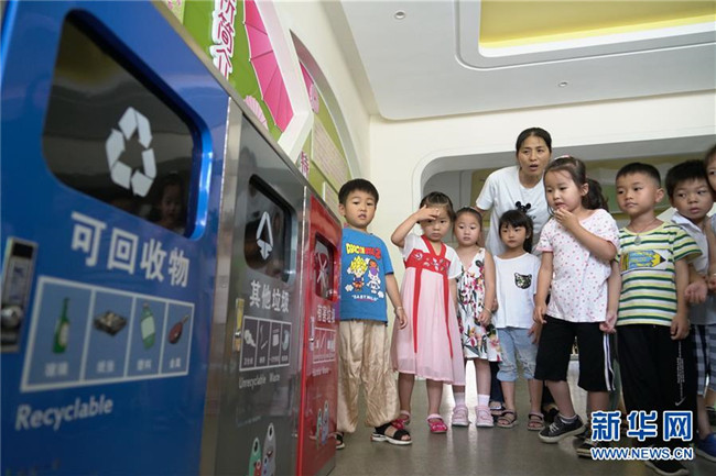 當(dāng)日,浙江省湖州市德清縣乾元鎮(zhèn)第一幼兒園的小朋友在老師和家長的帶領(lǐng)下,通過唱童謠、做游戲等形式,輕松學(xué)習(xí)垃圾分類相關(guān)知識,為維護(hù)環(huán)境衛(wèi)生作出努力。