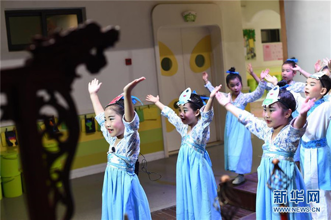 7月4日,德清縣乾元鎮(zhèn)第一幼兒園小朋友們在唱垃圾分類兒歌。新華社記者 尹棟遜 攝