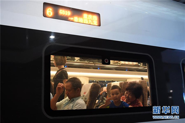 7月11日,一位小朋友在G319次列車上向窗外揮手。當(dāng)日,重慶至香港直達(dá)高鐵正式開通,此次首發(fā)的G319次復(fù)興號列車運(yùn)行速度350km/h,沿途經(jīng)停遵義、貴陽東、桂林西、肇慶東、廣州南和深圳北站。列車由重慶西站至香港西九龍站全程運(yùn)行需7小時(shí)37分鐘,全程票二等座票價(jià)為660元。目前內(nèi)地與香港聯(lián)通的高鐵車站已增加到58個(gè)。新華社記者唐奕攝