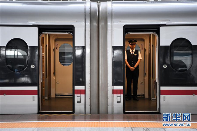 7月11日,乘務(wù)員在G319次列車上等待旅客上車。當(dāng)日,重慶至香港直達(dá)高鐵正式開通,此次首發(fā)的G319次復(fù)興號列車運(yùn)行速度350km/h,沿途經(jīng)停遵義、貴陽東、桂林西、肇慶東、廣州南和深圳北站。列車由重慶西站至香港西九龍站全程運(yùn)行需7小時(shí)37分鐘,全程票二等座票價(jià)為660元。目前內(nèi)地與香港聯(lián)通的高鐵車站已增加到58個(gè)。新華社記者唐奕攝