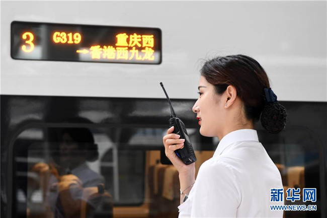 7月11日,乘務(wù)員在G319次列車上做發(fā)車前的準(zhǔn)備工作。當(dāng)日,重慶至香港直達(dá)高鐵正式開通,此次首發(fā)的G319次復(fù)興號列車運(yùn)行速度350km/h,沿途經(jīng)停遵義、貴陽東、桂林西、肇慶東、廣州南和深圳北站。列車由重慶西站至香港西九龍站全程運(yùn)行需7小時(shí)37分鐘,全程票二等座票價(jià)為660元。目前內(nèi)地與香港聯(lián)通的高鐵車站已增加到58個(gè)。新華社記者唐奕攝