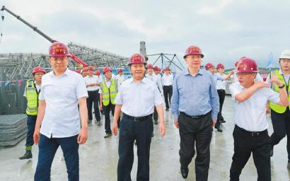 今年1月省委召開專題會議,研究部署加快推進成都天府國際機場建設工作。半年時間過去了,工作落實得怎么樣、建設進度如何?24日一早,彭清華、尹力冒雨來到天府國際機場建設現(xiàn)場,登上T1航站樓2樓平臺,眺望綜合交通換乘中心項目施工場地,仔細察看航站樓內(nèi)部結(jié)構(gòu)、建筑材料、配套設施等情況,詢問了解各方面工程項目建設進展。隨后,彭清華在機場保障基地主持召開座談會,聽取機場建設推進情況匯報。他對前一階段工作給予肯定,并提出工作要求。彭清華指出,建設天府國際機場是黨中央國務院著眼全局作出的重大戰(zhàn)略布局,是事關(guān)四川長遠發(fā)展的百年大計。要明確功能定位,把新機場片區(qū)作為“一帶一路”的重要國際門戶樞紐、成渝城市群一體化發(fā)展的重要支撐、成都“東進”戰(zhàn)略的重要引擎、未來航空科技發(fā)展的重要基地。要加強統(tǒng)籌協(xié)調(diào),精心組織實施,及時研究解決制約工程建設的困難和問題,在保證質(zhì)量和安全的前提下,倒排工期、搶抓進度,確保如期高質(zhì)量建成并投入使用。要提前謀劃運營管理工作,學習借鑒國際先進機場管理經(jīng)驗,優(yōu)化“兩場一體”運營模式,拓展國際國內(nèi)航線網(wǎng)絡,創(chuàng)新智能化服務方式,提升客貨承載能力。要高起點布局建設國際空港新城,著力構(gòu)建“以航興城、以城促航、產(chǎn)城融合”發(fā)展格局。