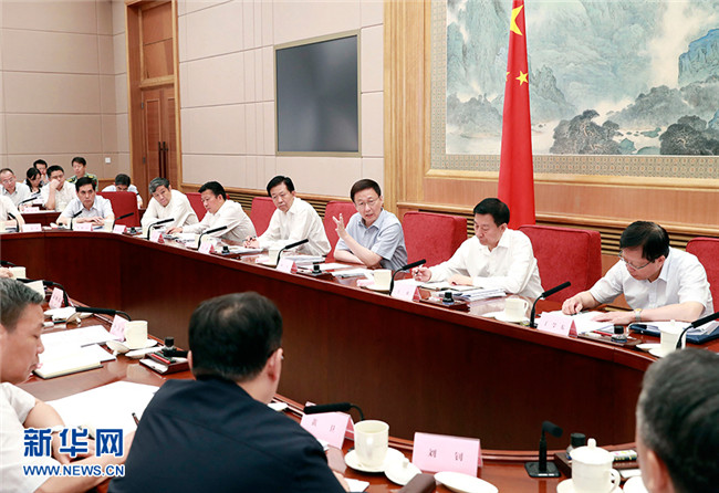 7月25日,中共中央政治局常委、國務院副總理、國務院推進政府職能轉變和“放管服”改革協(xié)調小組組長韓正在北京主持召開國務院推進政府職能轉變和“放管服”改革協(xié)調小組全體會議。 新華社記者 龐興雷 攝