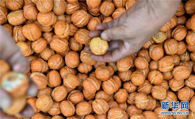 近年來,河北省石家莊市贊皇縣依托山地生態(tài)優(yōu)勢,因地制宜,引導(dǎo)農(nóng)戶種植核桃等經(jīng)濟(jì)作物,發(fā)展特色農(nóng)業(yè),助力農(nóng)民脫貧增收。據(jù)了解,目前贊皇縣核桃種植面積已達(dá)40余萬畝,遍及全縣11個鄉(xiāng)鎮(zhèn)150多個村。 新華社記者 駱學(xué)峰 攝