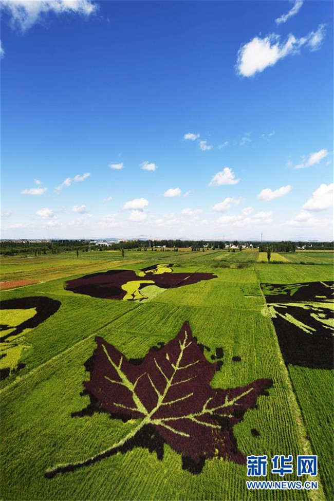 這是8月18日在新疆察布查爾錫伯自治縣納達(dá)齊牛錄鄉(xiāng)稻田畫(huà)基地拍攝的稻田畫(huà)。