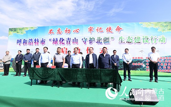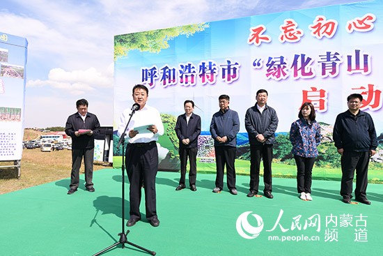 內(nèi)蒙古自治區(qū)黨委常委、呼和浩特市委書記王莉霞宣布生態(tài)建設(shè)行動啟動。
