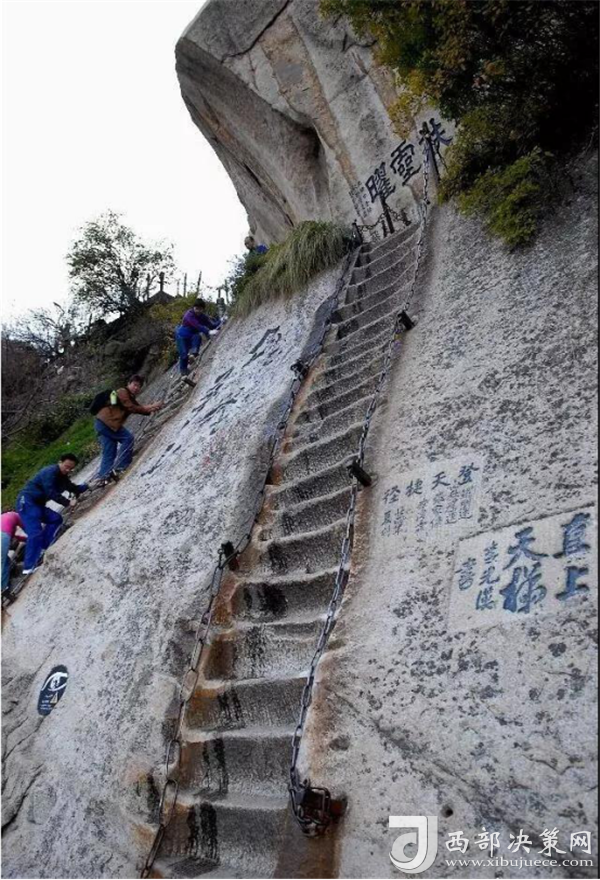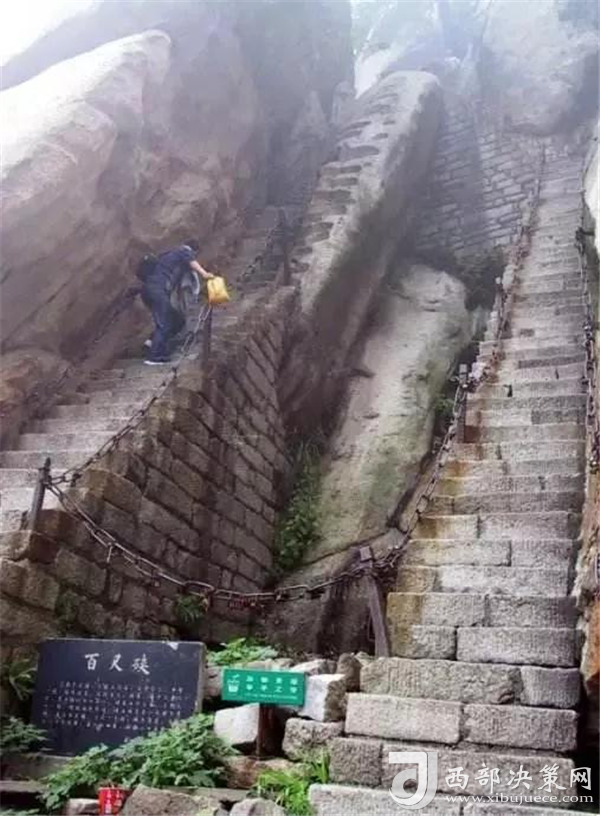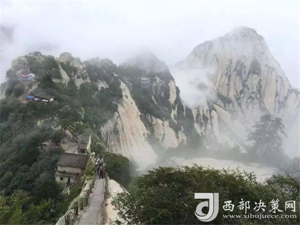眾所周知,華山在五岳之中以“險(xiǎn)峻”著稱。素有“奇險(xiǎn)天下第一山”之譽(yù),華山的主體是由一塊完整碩大的花崗巖體構(gòu)成的,挺拔地屹立在渭河平原。東、南、西三峰拔地而起,如利刃削就。由于華山太險(xiǎn),所以唐代以前很少有人登臨,歷代君王祭祀西岳,也只是在山下西岳廟中舉行大典。據(jù)記載,直到魏晉南北朝時(shí)期,還沒(méi)有通向華山峰頂?shù)牡缆?。唐代才逐漸在北坡沿溪谷而上開鑿了一條險(xiǎn)道,也從此有了“自古華山一條路”的說(shuō)法。