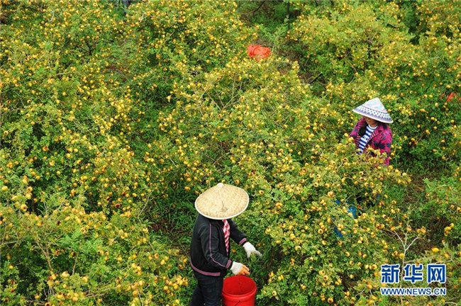 貴州省龍里縣谷腳鎮(zhèn)的農(nóng)民在采摘刺梨鮮果(2018年8月22日攝)。 近年來,貴州省圍繞產(chǎn)業(yè)選擇、培訓(xùn)農(nóng)民、技術(shù)服務(wù)、資金籌措、組織方式、產(chǎn)銷對接、利益聯(lián)結(jié)、基層黨建等“八要素”,通過“減、融、服”創(chuàng)新推進(jìn)農(nóng)村產(chǎn)業(yè)結(jié)構(gòu)調(diào)整,既帶動了農(nóng)戶增收,也推動了特色產(chǎn)業(yè)做大做強(qiáng)。 新華社記者 楊文斌 攝