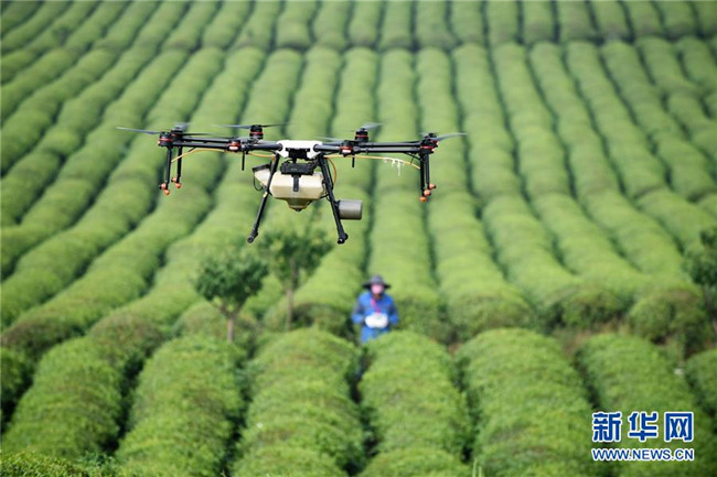 農(nóng)技人員操作植保無人機(jī)在貴州省安順市西秀區(qū)明英茶生產(chǎn)基地作業(yè)(5月23日攝)。 近年來,貴州省圍繞產(chǎn)業(yè)選擇、培訓(xùn)農(nóng)民、技術(shù)服務(wù)、資金籌措、組織方式、產(chǎn)銷對接、利益聯(lián)結(jié)、基層黨建等“八要素”,通過“減、融、服”創(chuàng)新推進(jìn)農(nóng)村產(chǎn)業(yè)結(jié)構(gòu)調(diào)整,既帶動了農(nóng)戶增收,也推動了特色產(chǎn)業(yè)做大做強(qiáng)。 新華社記者 楊文斌 攝